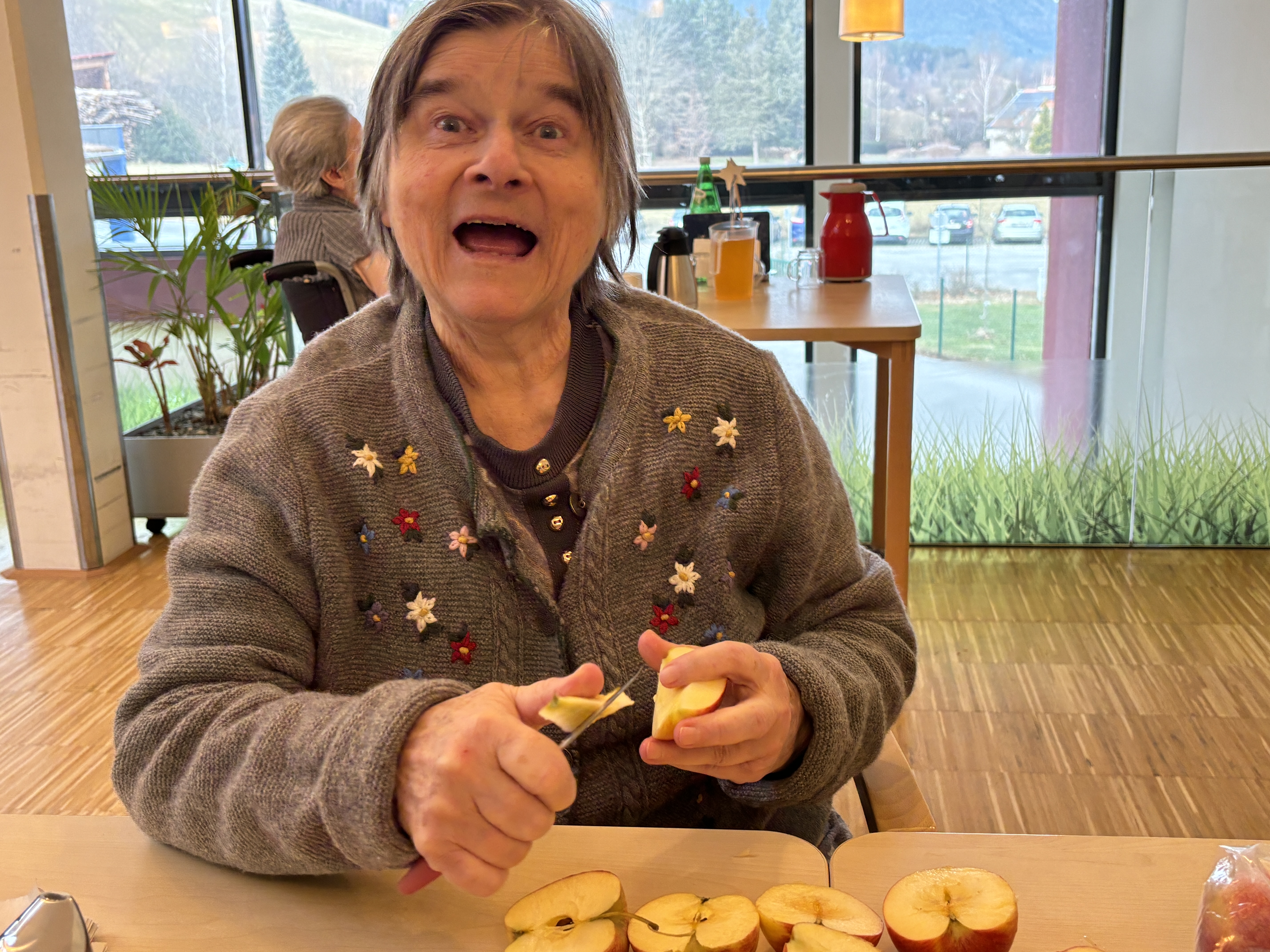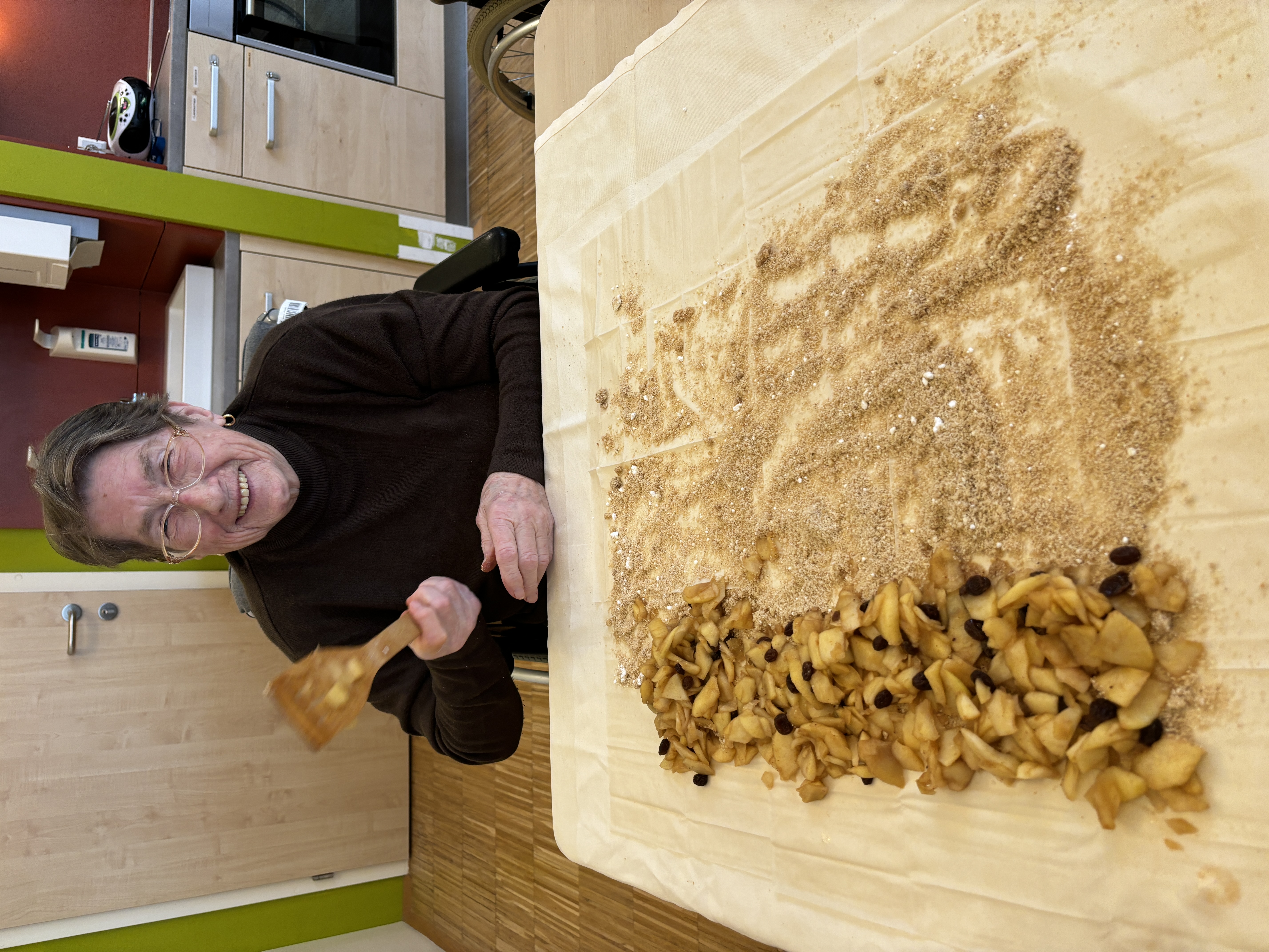 Kürzlich wurde im SeneCura Sozialzentrum Kirchberg am Wechsel wieder fleißig gebacken. Die Bewohner:innen haben einen köstlichen Apfelstrudel gebacken, bei dem sie den ganzen Vormittag mit dem Schälen sowie Schneiden von unzähligen Äpfeln beschäftigt waren, damit alle Anwesenden zur Nachmittagsjause einen leckeren Strudel bekommen. Der süße Duft der Äpfel verbreitete sich im ganzen Haus und die Vorfreude wurde im größer den köstlichen Apfelstrudel genießen zu können. Als das Dessert aus dem Ofen kam, konnte es den Gästen mit aromatischer Vanillesauce serviert werden. „Das ist ein Apfelstrudel genauso wie ich Ihn zu Hause auch immer gemacht habe“, schwärmte die Bewohnerin Marianne Böhm, die auch fleißig beim Backen beteiligt war. Alle Anwesenden waren sich sicher, dass sie dieses Dessert nun öfter im Haus genießen möchten.