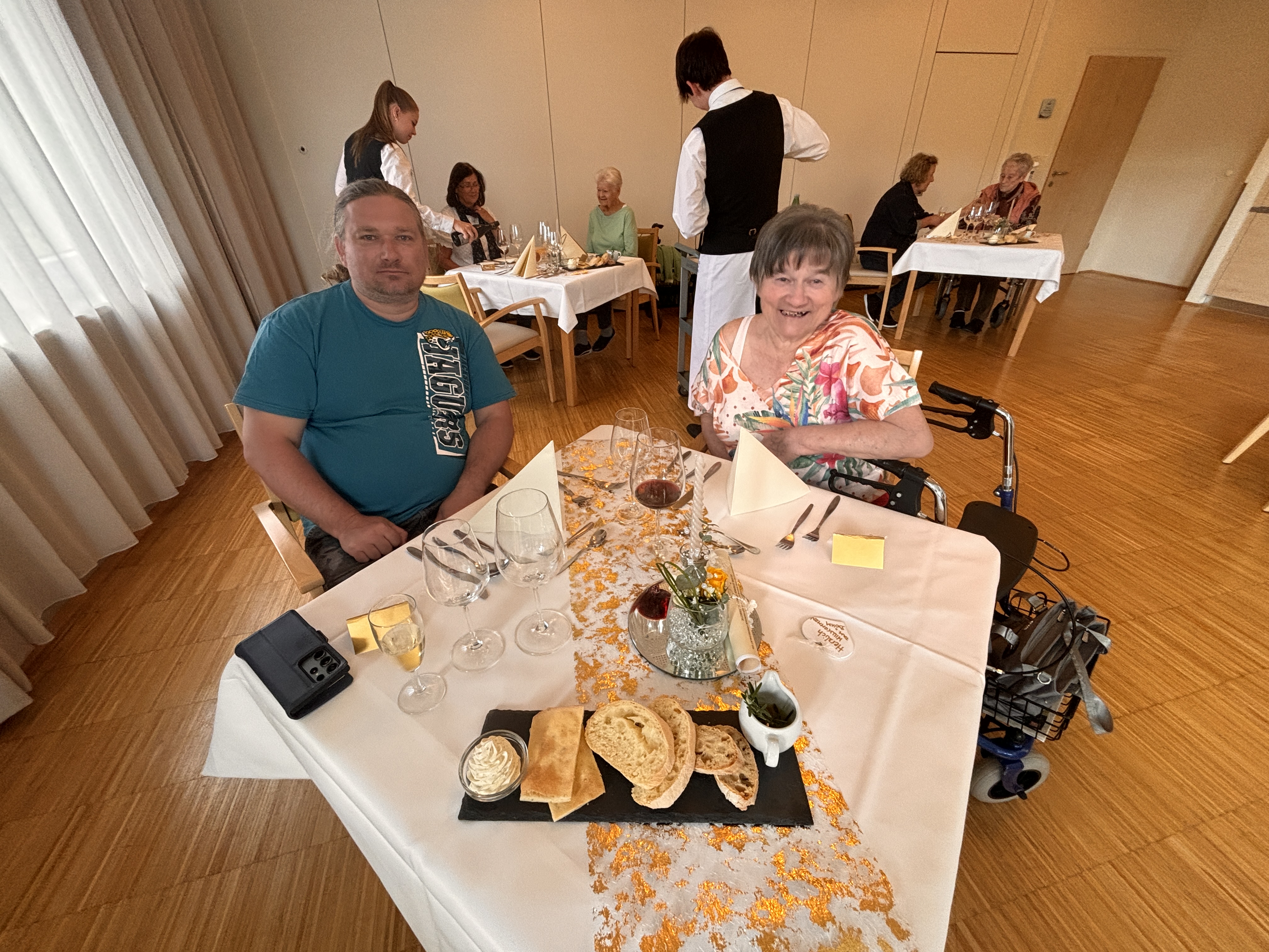Kürzlich fand im SeneCura Sozialzentrum Kirchberg am Wechsel ein festliches Candle Light Dinner statt. Bei elegant gedeckten Tischen sowie musikalischer Begleitung am Saxophon von Manfred Spieß wurde für die Bewohner:innen und deren Angehörigen ein herrliches 4-Gänge-Menü von den Schüler:innen der Tourismusschule Semmering serviert. Auch das Tanzbein wurde an diesem Abend geschwungen und die Hausleitung Elisabeth Windbichler wurde von Gerhard Pregartner zum Tanzen eingeladen. „So einen schönen Abend habe ich noch nie gehabt – es war einfach wunderbar!“, so Bewohnerin Marianne Böhm, die auch mit ihrem Sohn an dem Dinner teilnahm.