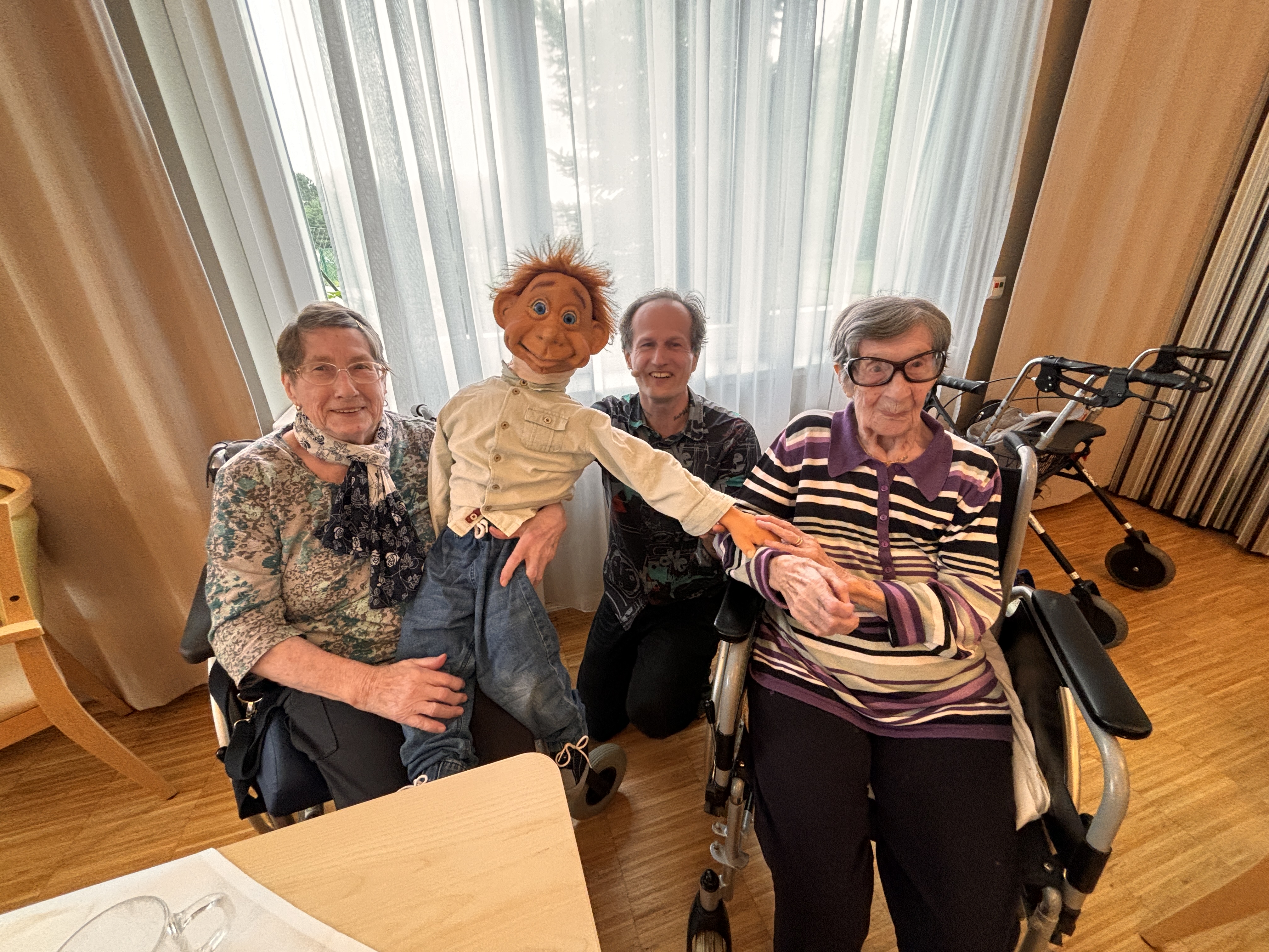 Kürzlich hatte das SeneCura Sozialzentrum Kirchberg am Wechsel Besuch von Bauchredner Max Wully und seinem Will. Die beiden Gäste haben bestens für reichlich Spaß und gute Stimmung im Haus gesorgt. Herzliches Lachen ist definitiv garantiert, wenn der kleine Willi seine lustigen Geschichten erzählt. Zu den zahlreichen Pointen gab es einige bekannte Lieder, die zum Mitsingen animierten. Insgesamt 50 Minuten lebte der Bauchredner Max Wully sein Motto mit dem Publikum: Gemeinsames Lachen und Singen lässt das Herz erblühen.