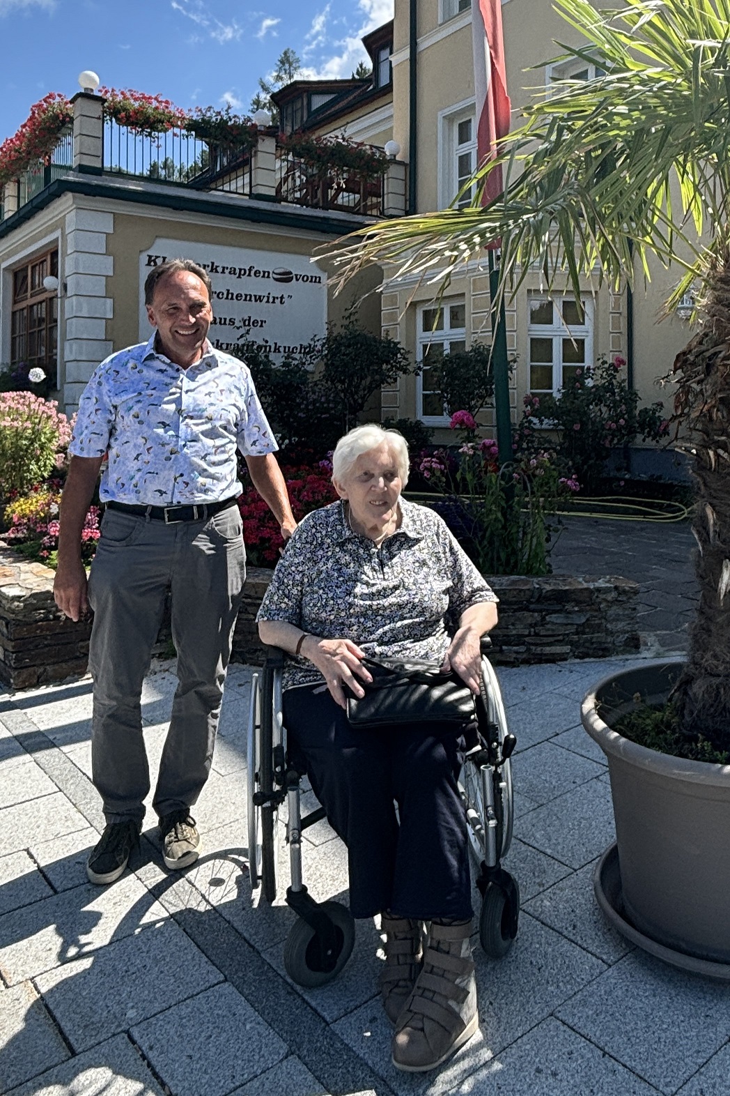 Die Bewohnerin Ingeborg Friesenbichler bekommt oft Besuch von ihren Liebsten im SeneCura Sozialzentrum Kirchberg am Wechsel. Nun äußerte sie den Wunsch, das Spiel einmal umzudrehen und wollte ihre Verwandten und Bekannten in ihrer alten Heimat Schottwien besuchen. Diesen Wunsch ließ das SeneCura Team natürlich mit großer Freude in Erfüllung gehen. Die Reise begann in Maria Schutz, wo die Bewohnerin mit strahlenden Augen von ihren Lieben erwartet wurde. Nach einem emotionalen Wiedersehen in der Wallfahrtskirche ging es weiter zum Gasthof Auerhahn, wo sich alle bei einem gemeinsamen Essen stärkten und gegenseitig auf den neuesten Stand brachten. „Ich bin so dankbar, dass ich diesen Tag erleben durfte und das SeneCura Team diesen großen Wunsch Wirklichkeit werden ließ. Es war so schön, meine frühere Heimat wieder zu sehen und natürlich noch schöner dort auf meine Familie und Freund:innen zu treffen“, erzählte Ingeborg Friesenbichler mit einem Lächeln, das ihre tiefe Freude widerspiegelte.