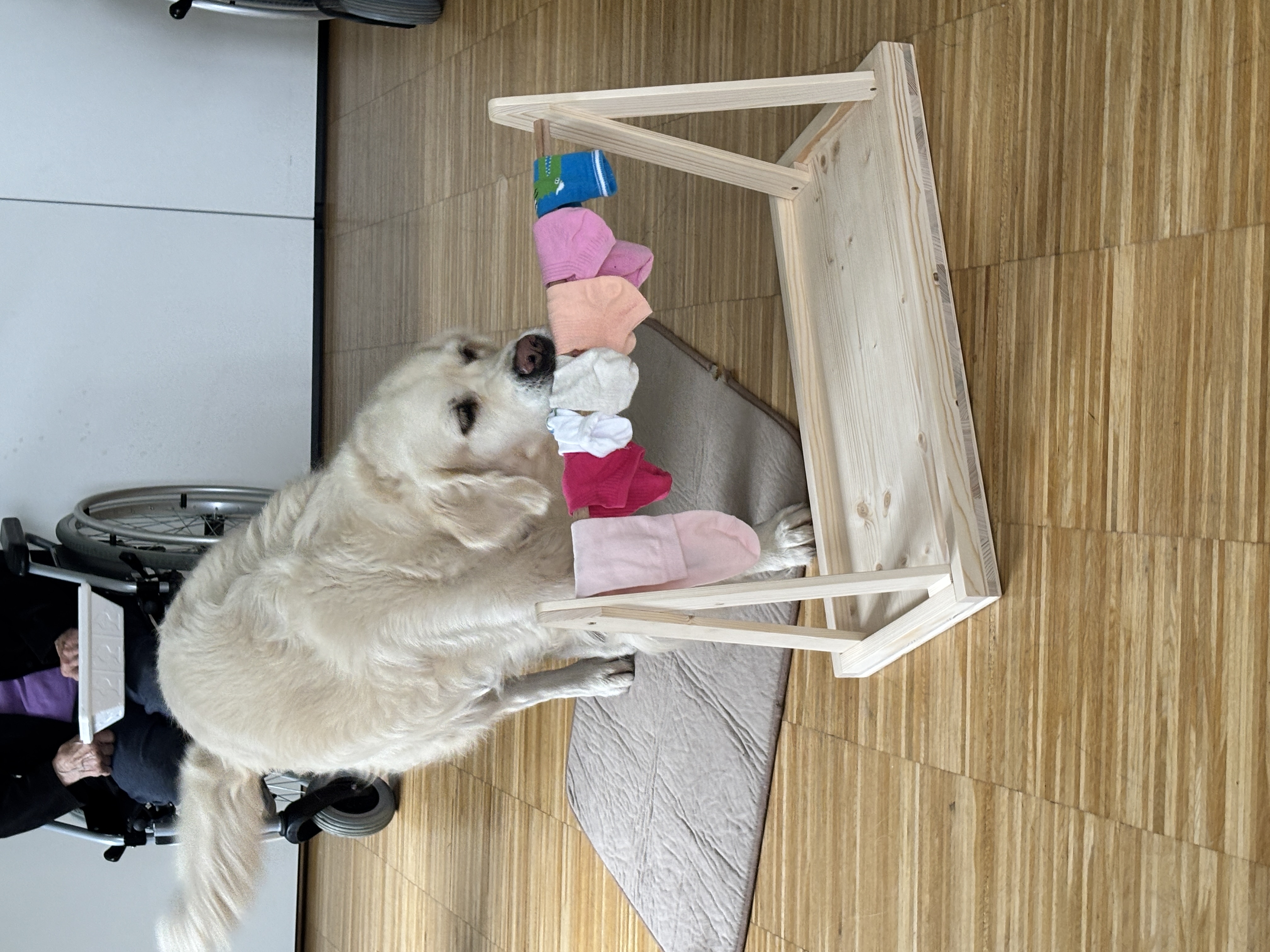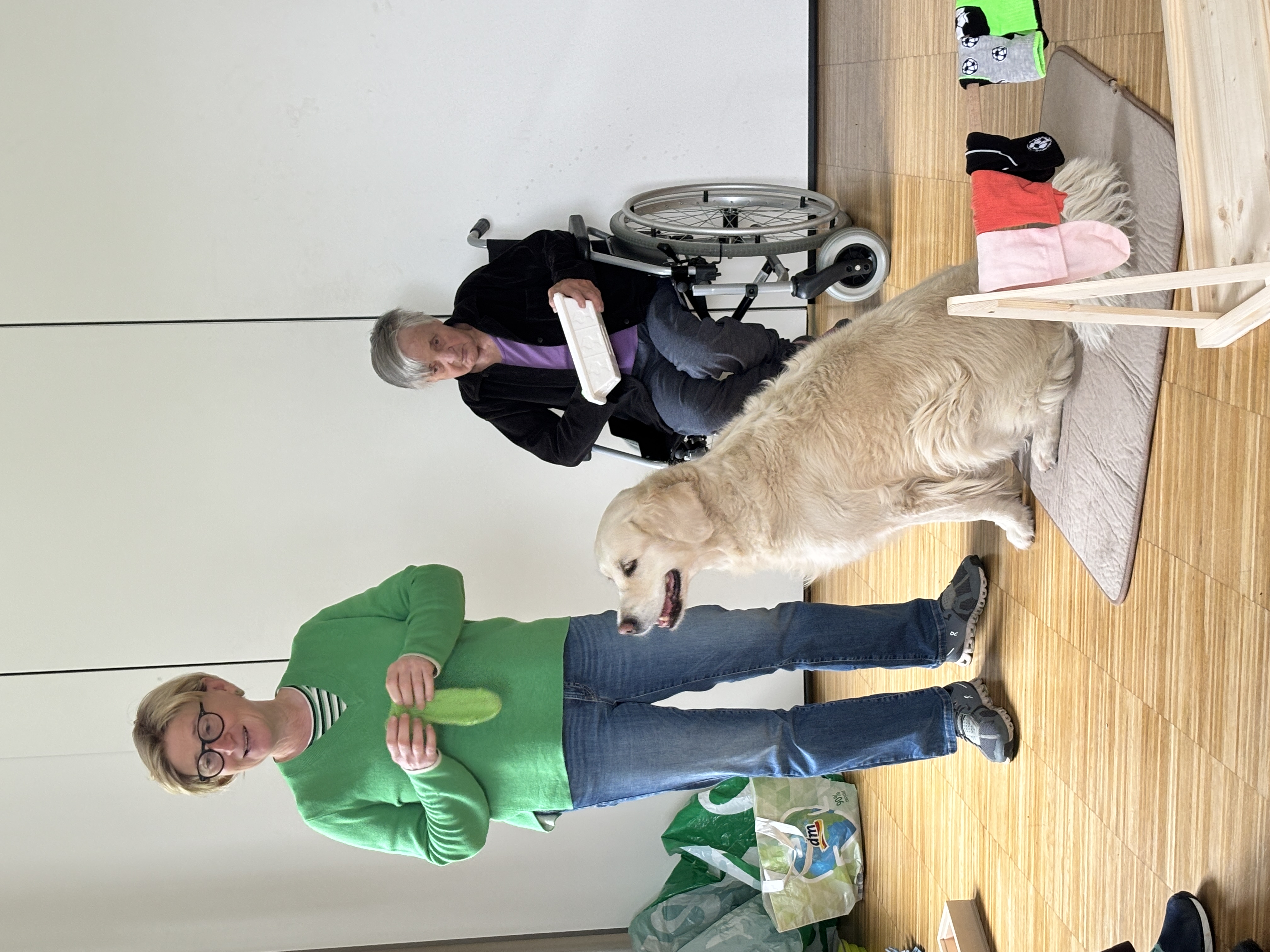 Ein neuer Therapiehund hat im SeneCura Sozialzentrum Kirchberg am Wechsel Einzug gehalten. Vor kurzem stellte sich Birgit Reiterer und ihre Hundedame „May“ bei den Bewohner:innen vor –die Seniorinnen und Senioren waren natürlich hellauf begeistert davon. Gleich in der ersten Therapiestunde eroberte May die Herzen aller und mit Ihren tollen Fähigkeiten motivierte sie die Bewohner:innen bei den Aufgaben mitzumachen. Alle freuen sich bereits auf die nächsten Stunden mit dem „neuen Therapieteam“.
