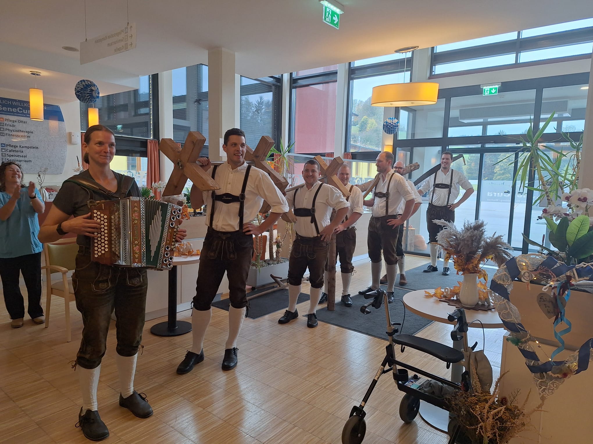 Letztens fand wieder das alljährliche Oktoberfest im SeneCura Sozialzentrum Kirchberg am Wechsel statt. Bei bayrischem Ambiente, Weißwürsten mit Brezen, Bier und volkstümlicher Musik ging es zünftig im Haus zu. Es wurde getanzt, gesungen und vor allem viel gelacht. Das Highlight waren wieder die „Tiefenbacher Schuhplattler“, welche wieder für Stimmung sorgten. Ein Dankeschön gilt der Gruppe, die jedes Jahr das Sozialzentrum beim Oktoberfest bereichern und immer wieder aufs Neue für Begeisterung bei den Seniorinnen und Senioren sorgen. „Das war wieder so ein schönes und lustiges Fest!“, so schwärmten die Bewohner:innen noch die ganzen nächsten Tage davon. Auch Hausleitung Christian Sonnleitner war stets begeistert von seinem ersten Fest im Haus und freut sich schon auf die nächsten Veranstaltungen.