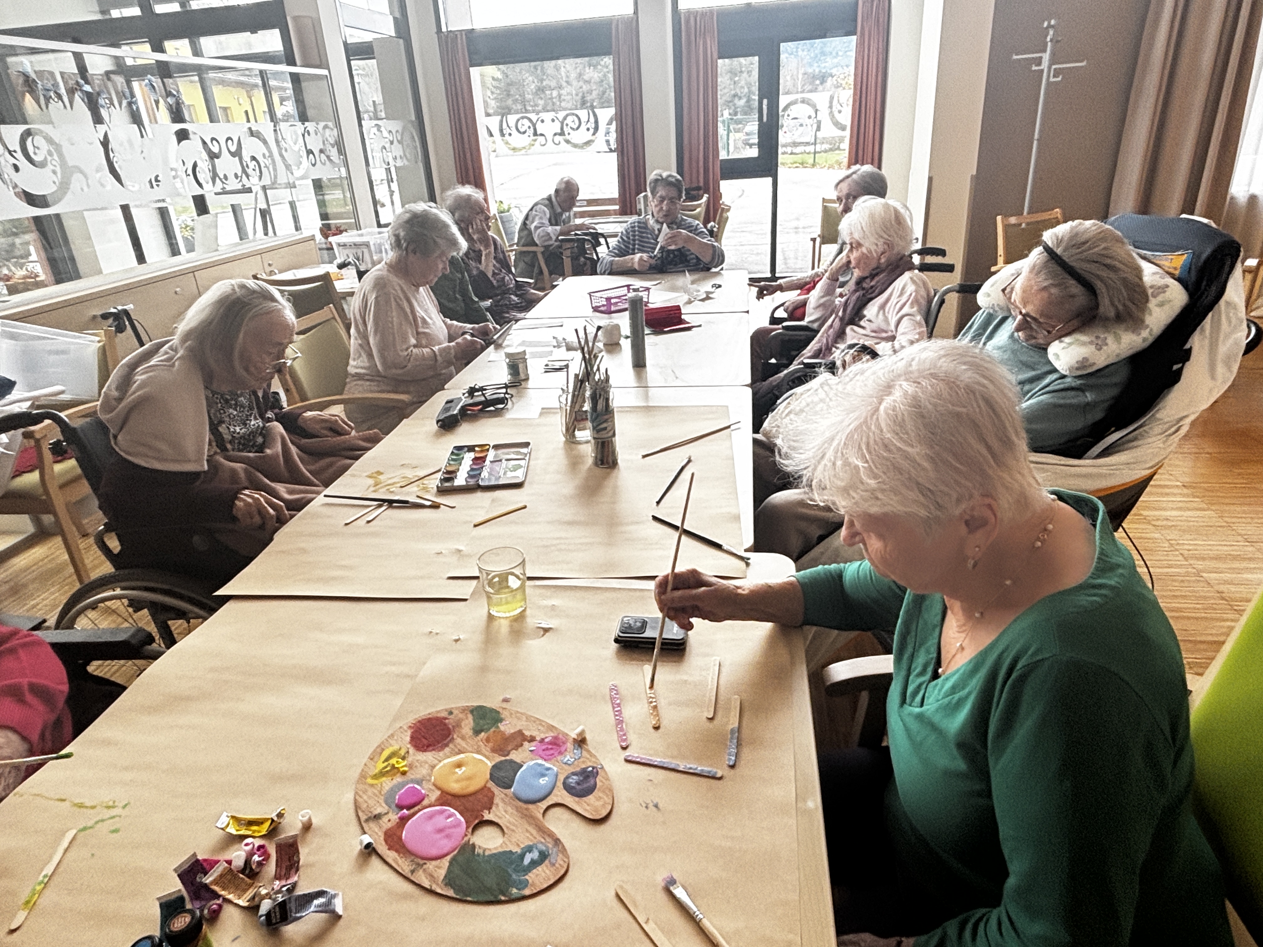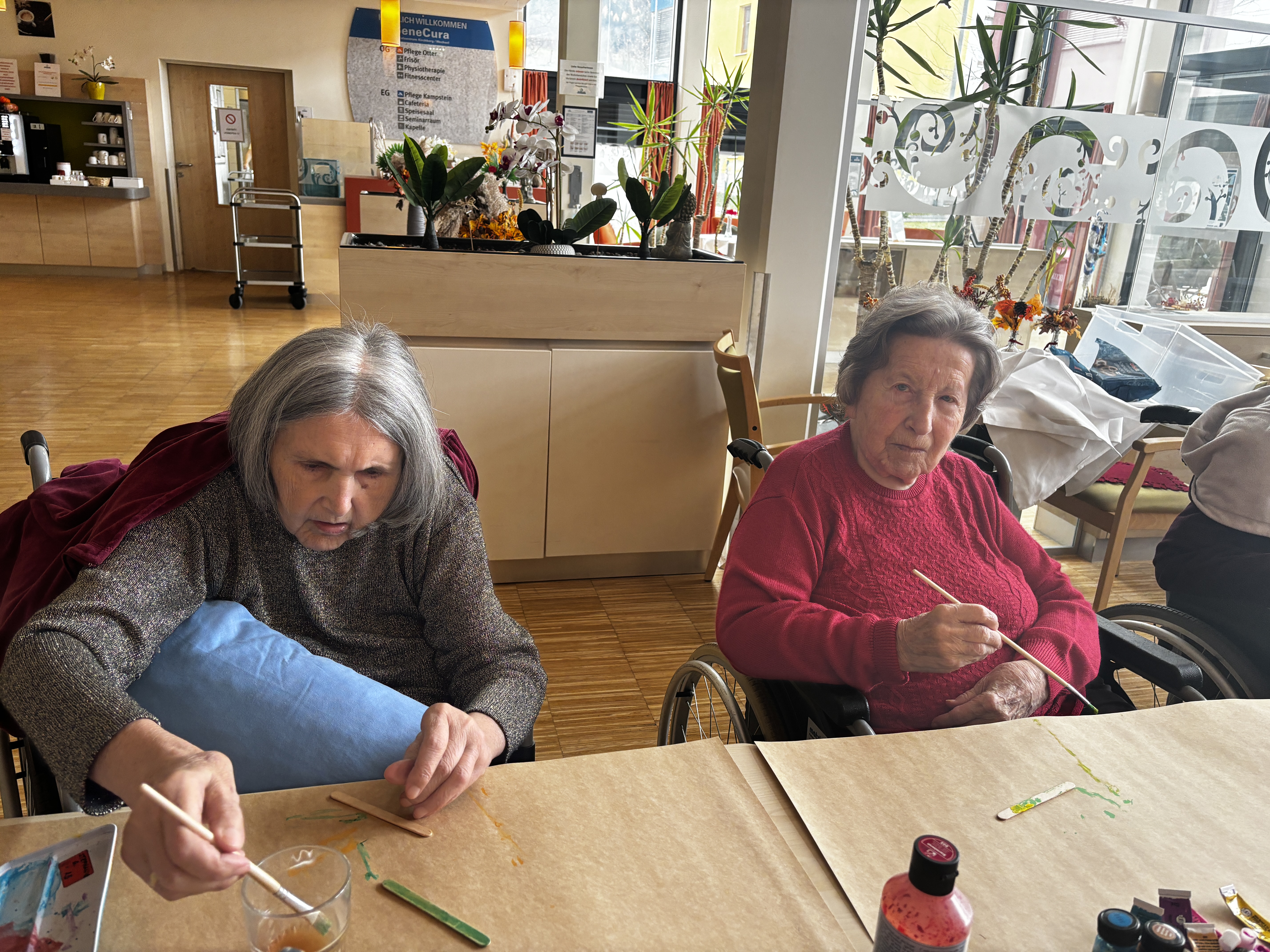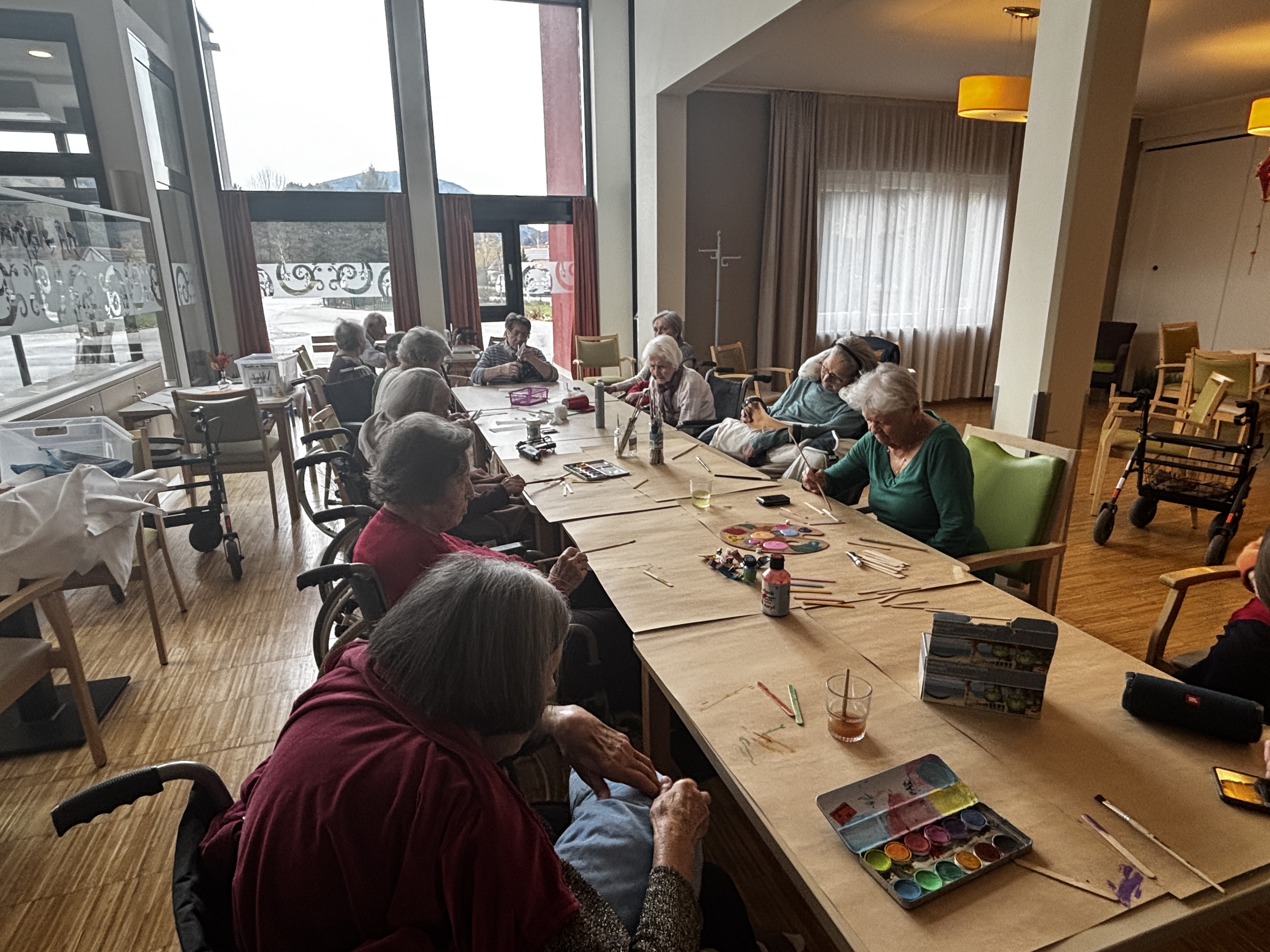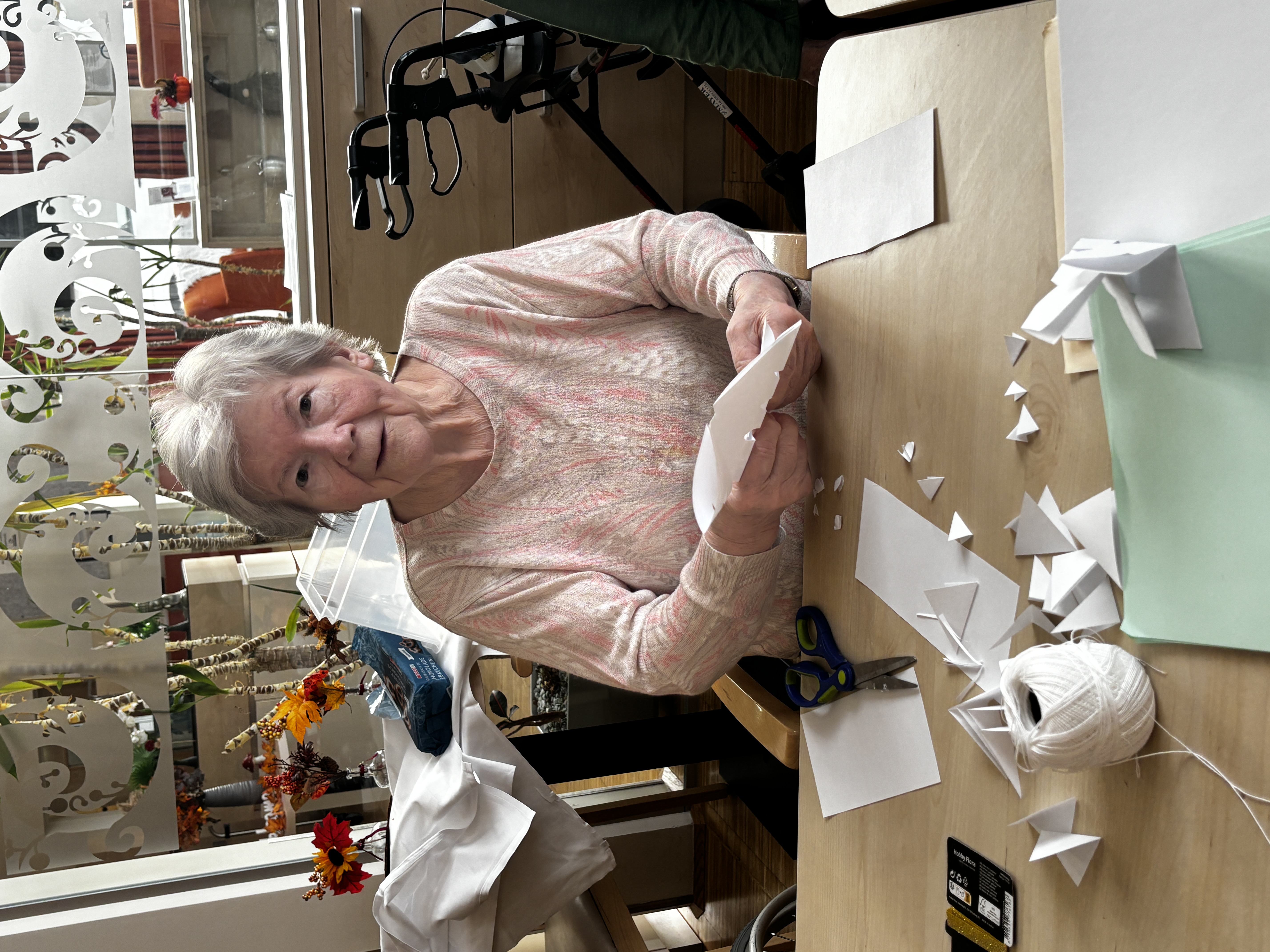Weihnachtszeit ist Bastelzeit – so auch im SeneCura Sozialzentrum Kirchberg am Wechsel. Die Bewohner:innen bemalten fleißig Holzstäbchen, um daraus schöne Sterne zu machen, die die Fenster in weihnachtlichen Glanz erscheinen lassen. Andere machten tolle Sterne aus Papier mit dem „Scherenschnitt“ und bewiesen, wie viel Kreativität und Geschick sie haben. Dazu klang aus dem Radio noch leise Weihnachtsmusik, die zum Mitsingen einlud, „Was das für eine schöne Zeit im Jahr ist!“, schwärmte Bewohnerin Elisabeth Fochler.