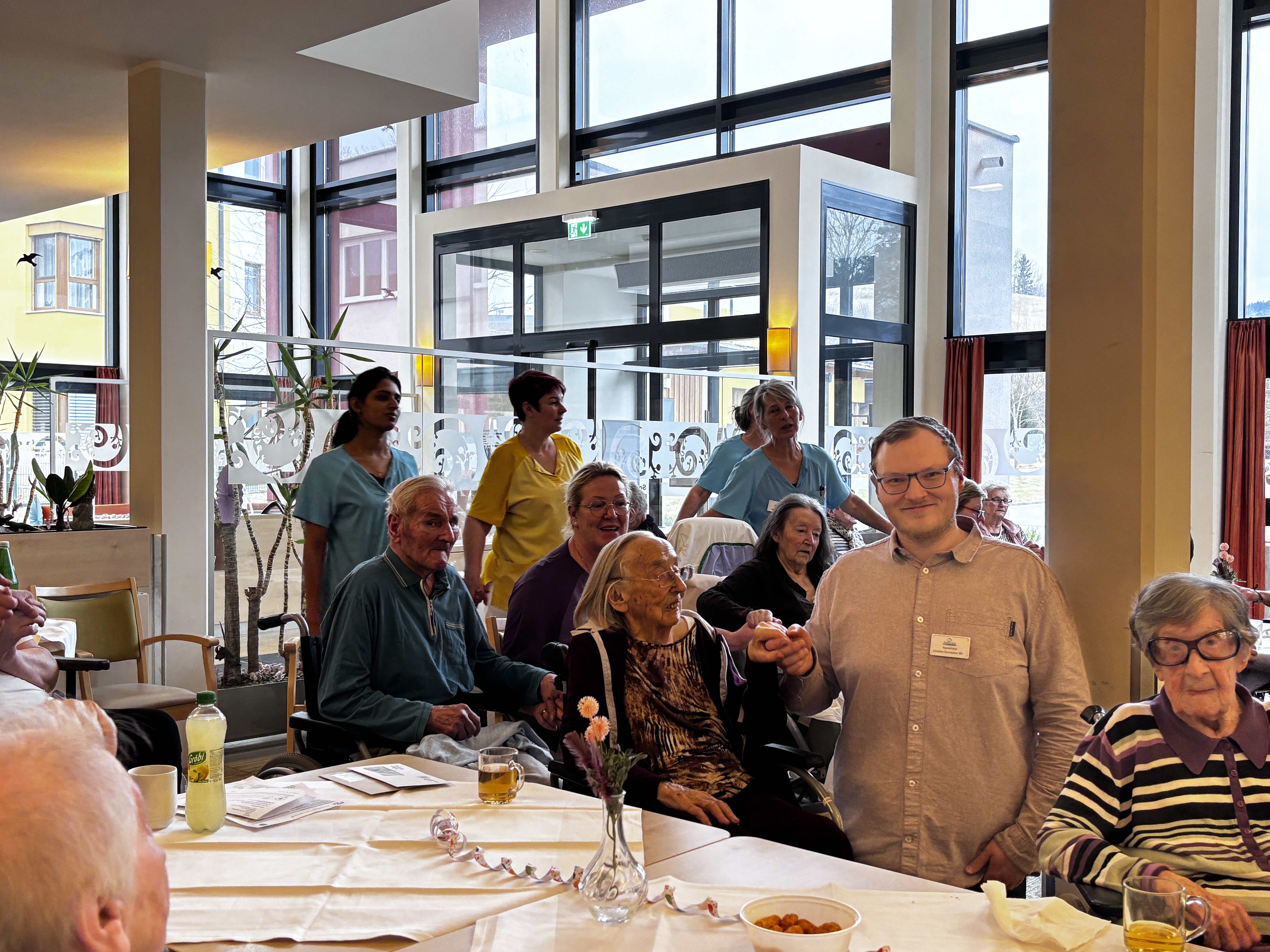 Vor kurzem erhielten die Bewohner:innen des SeneCura Sozialzentrums Kirchberg am Wechsel Besuch von der Seniorenvolkstanzgruppe Krumbach unter deren Obfrau Martha Piringer. Diese boten den Bewohner:innen eine Stunde lang ein tolles Programm begleitet wurden die Tänzer auf der Steirischen Harmonika von Andrea Pinter, die auch so manches Lied zum Mitsingen und Mitschunkeln spielte. Dazwischen wurden von Frau Piringer nette Gedichte und Kurzgeschichten vorgetragen. Zum Abschluss gab es noch das Lied „Wahre Freundschaft“ – es wurden sich die Hände gereicht und alle zum Mitsingen eingeladen wurden. „Es war eine so schöne Veranstaltung!“, schwärmten die Bewohner:innen noch einige Tage später. Auch die Hausleitung, Christian Sonnleitner, war begeistert und bedankt sich nochmal herzlichst bei der Seniorenvolkstanzgruppe, die diese Veranstaltung ehrenamtlich anboten.