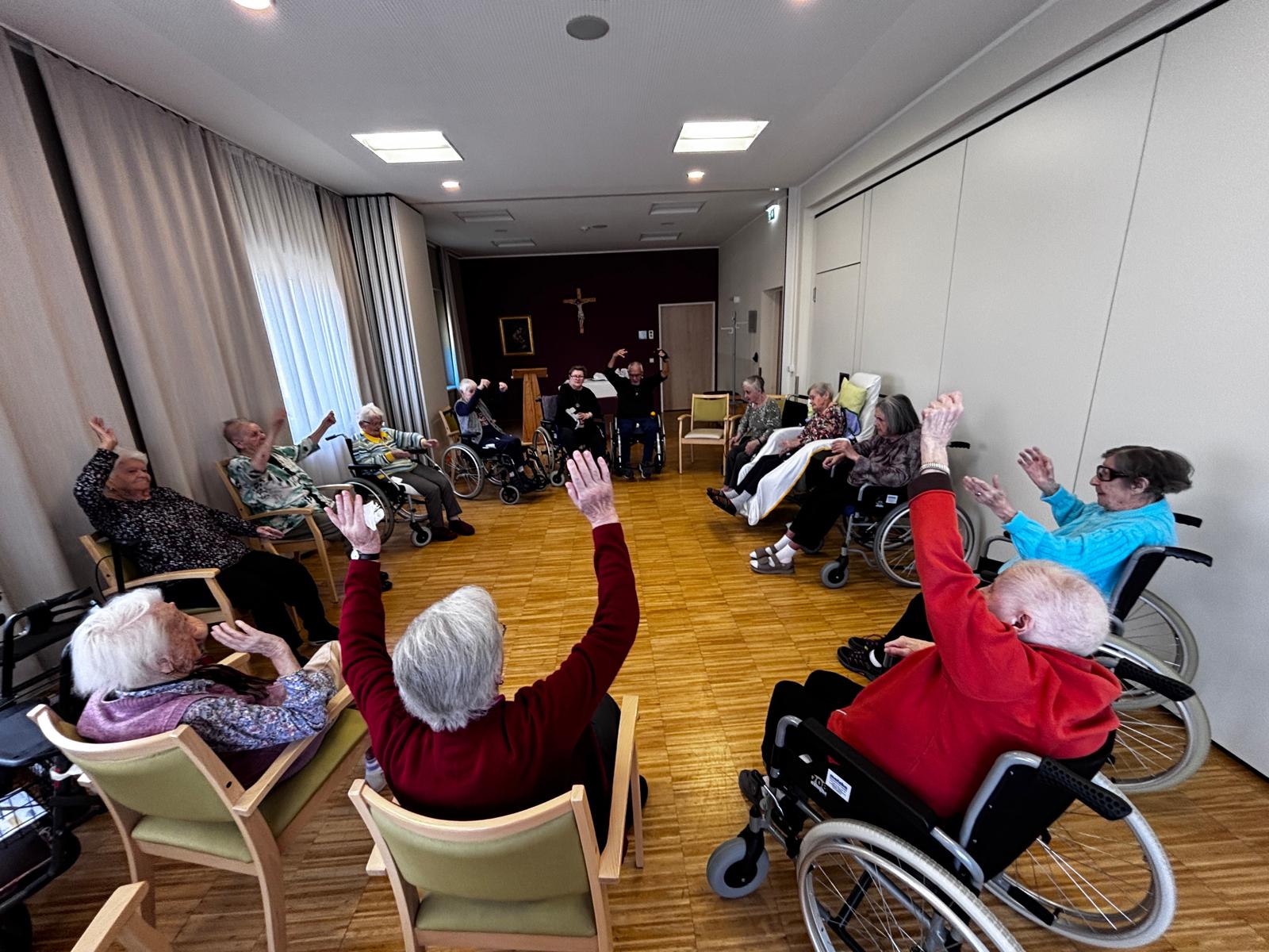 Jeden Montag heißt es: Fit mach mit! Seniorenbetreuerin Ulli begeistert die Seniorinnen und Senioren mit einfachen Übungen, die nicht nur effektiv sind, sondern auch jede Menge Spaß machen und die nötige Energie für den Tag geben.