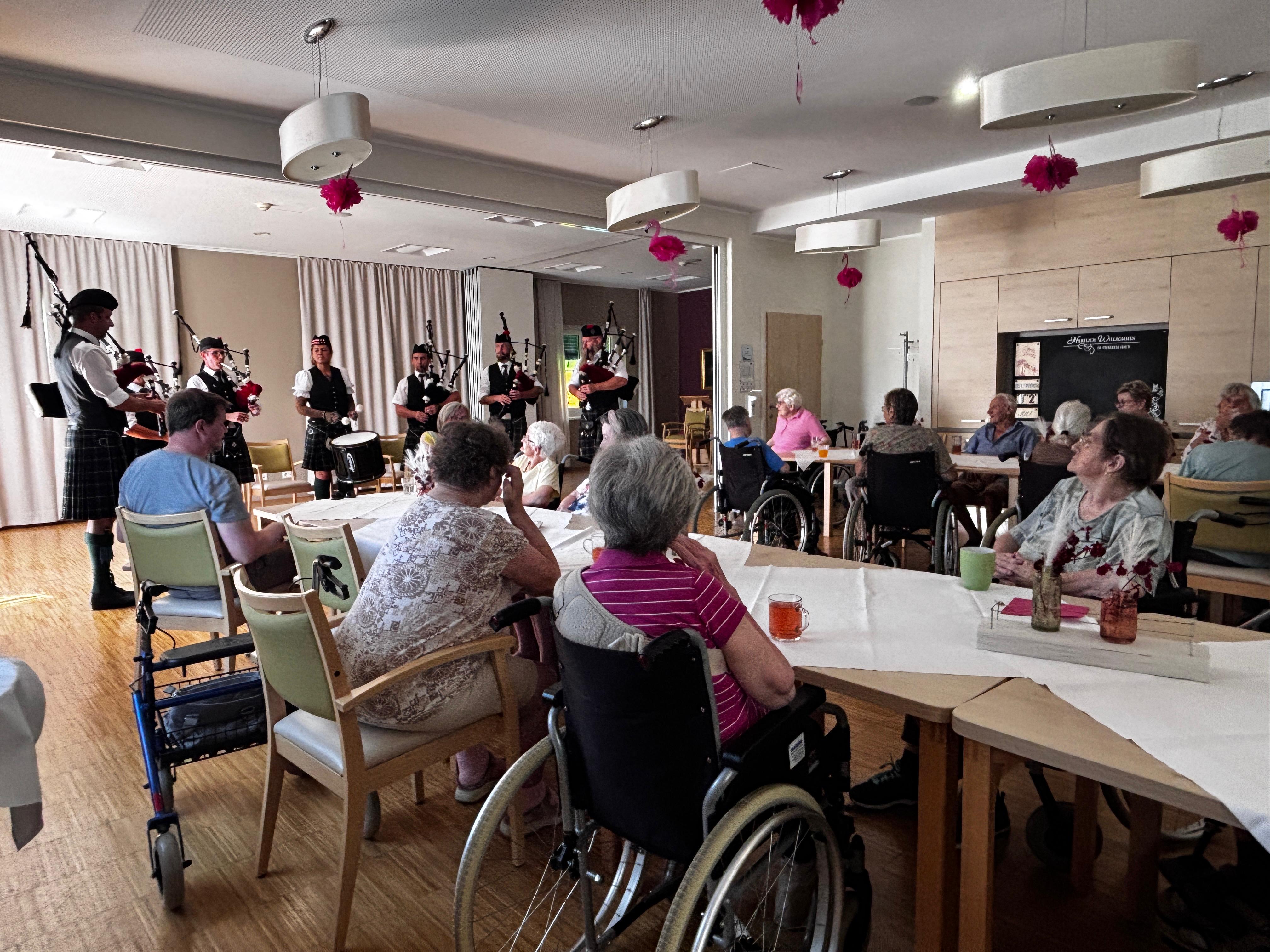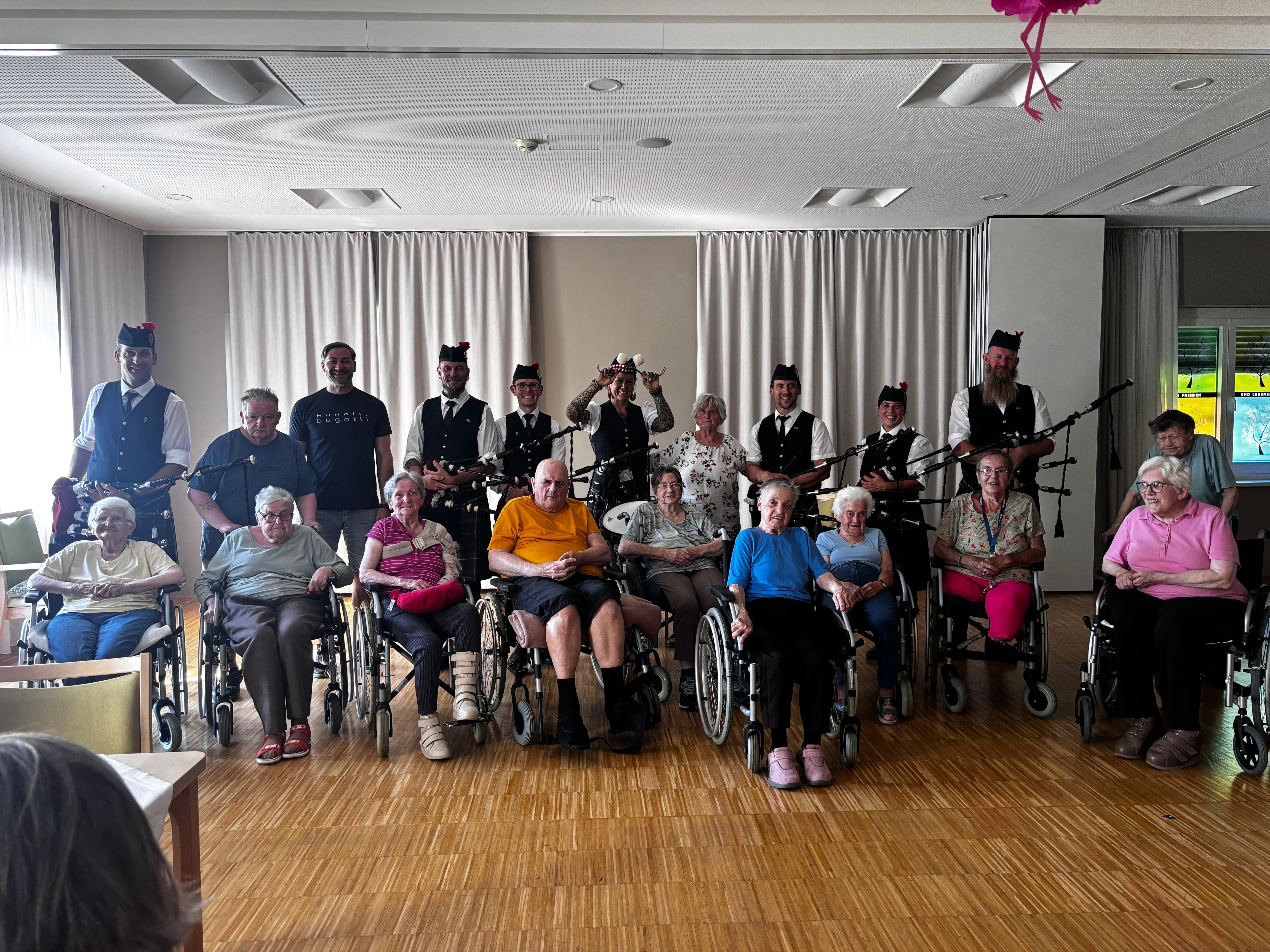 Ein ganz besonderes Highlight durften die Bewohner:innen des SeneCura Sozialzentrums Kirchberg am Wechsel kürzlich erleben. Die Black Smith Pipers – die erste und beste Dudelsack-Gruppe Niederösterreichs – hat uns mit ihrer mitreißenden Musik begeistert. Die Bewohner:innen waren begeistert, es wurde geschunkelt, gestaunt und gelacht. Und ja – so mancher fragte sich neugierig, was sich wohl unter dem Kilt verbirgt – aber dieses Geheimnis nehmen die Pipers natürlich mit nach Hause. Vielen Dank an die großartige Band für dieses unvergessliche Erlebnis!