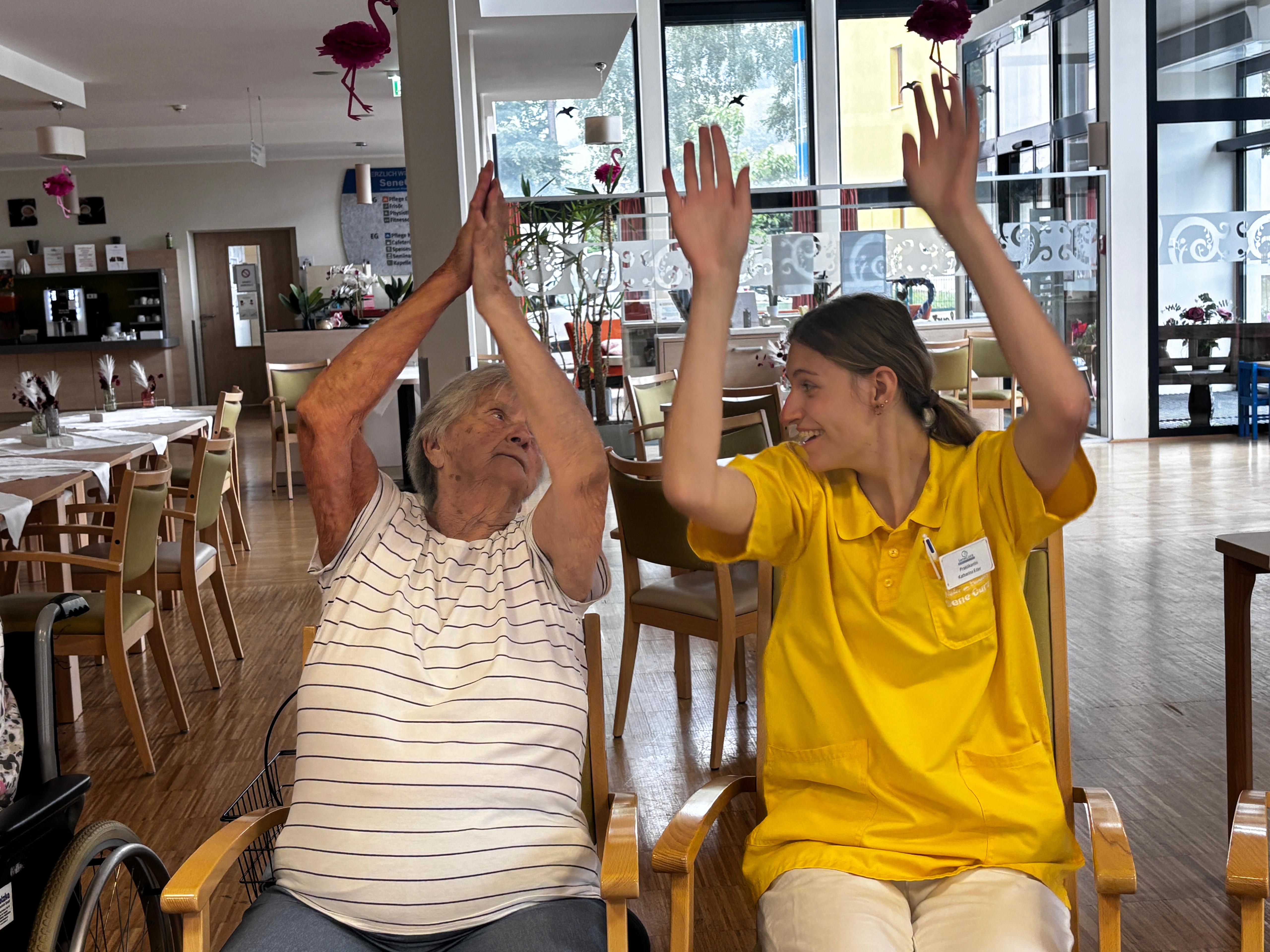 Immer mehr Bewohner:innen des SeneCura Sozialzentrums Kirchberg am Wechsel nehmen an der Bewegungsrunde teil und freuen sich über die Übungen. Die regelmäßige Bewegung bringt nicht nur Schwung in den Alltag, sondern stärkt auch das Gemeinschaftsgefühl. Es ist schön zu sehen, wie viel Freude und Energie die Runde verbreitet. Ob im Sitzen oder Stehen – jede:r macht mit, wie es möglich ist. Die Übungen fördern Mobilität, Koordination und machen einfach Spaß. Ein herzliches Dankeschön an alle, die diese Runde mitgestalten und unterstützen!