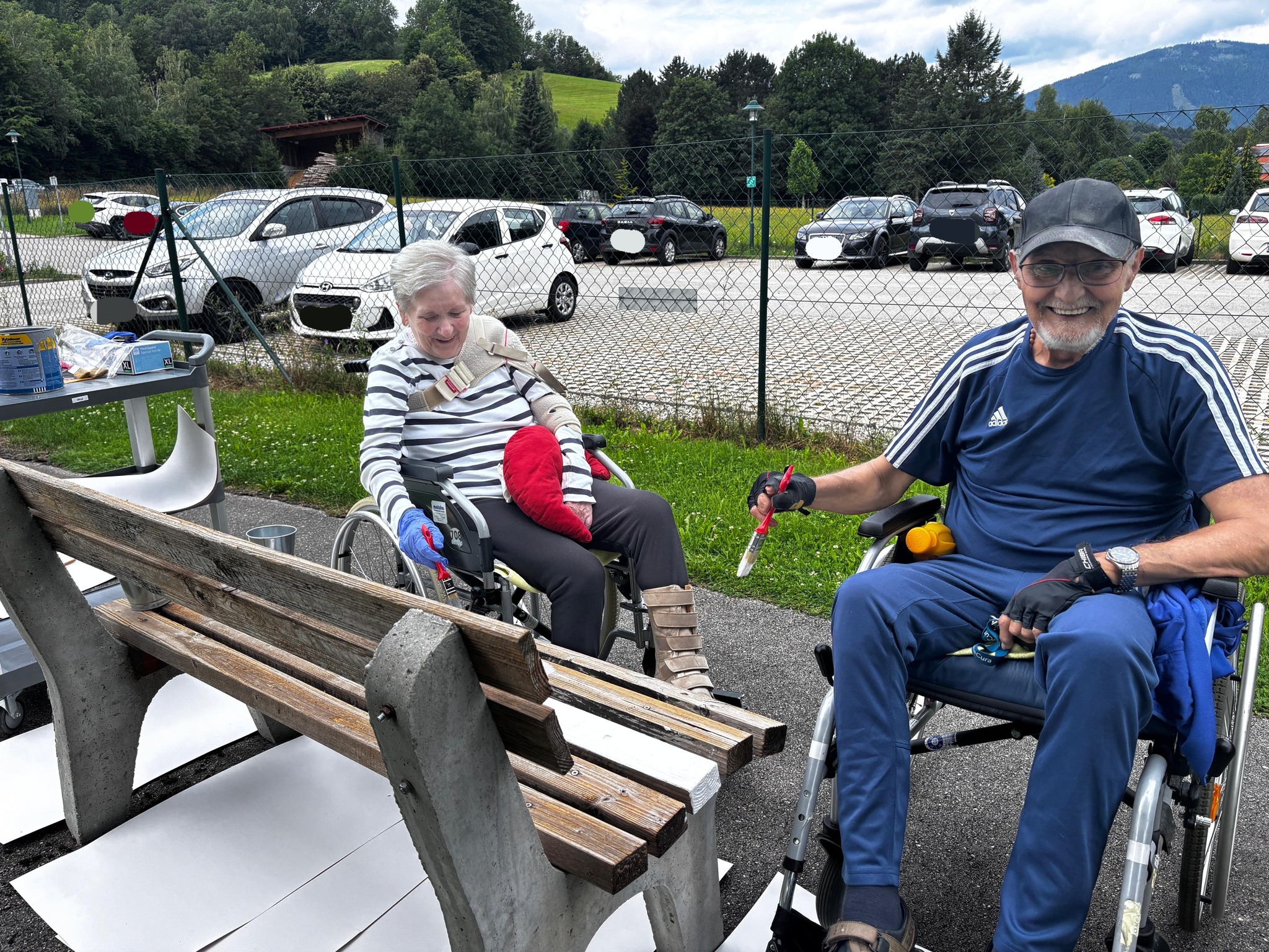 Frischer Anstrich für die Gartenbänke des im SeneCura Sozialzentrum Kirchberg am Wechsel