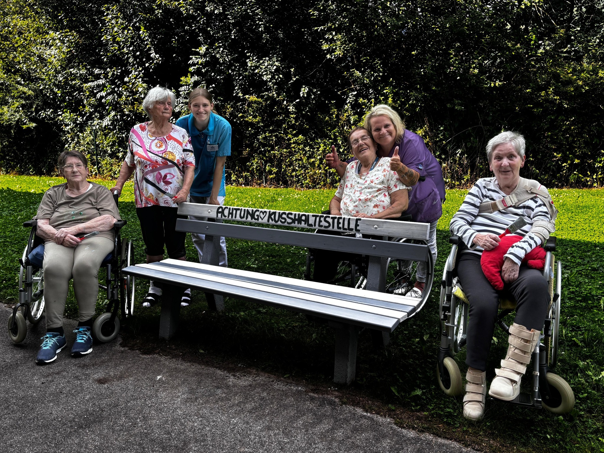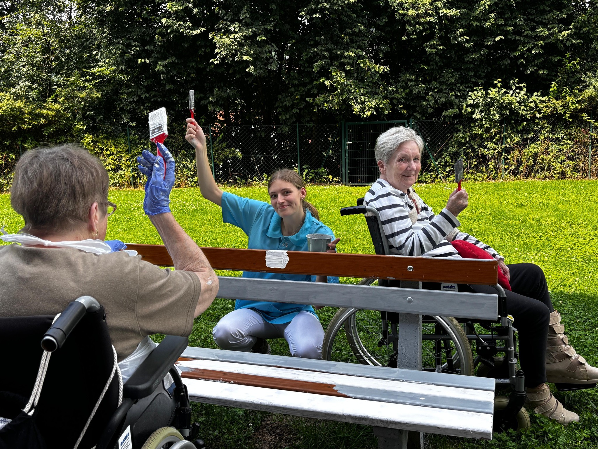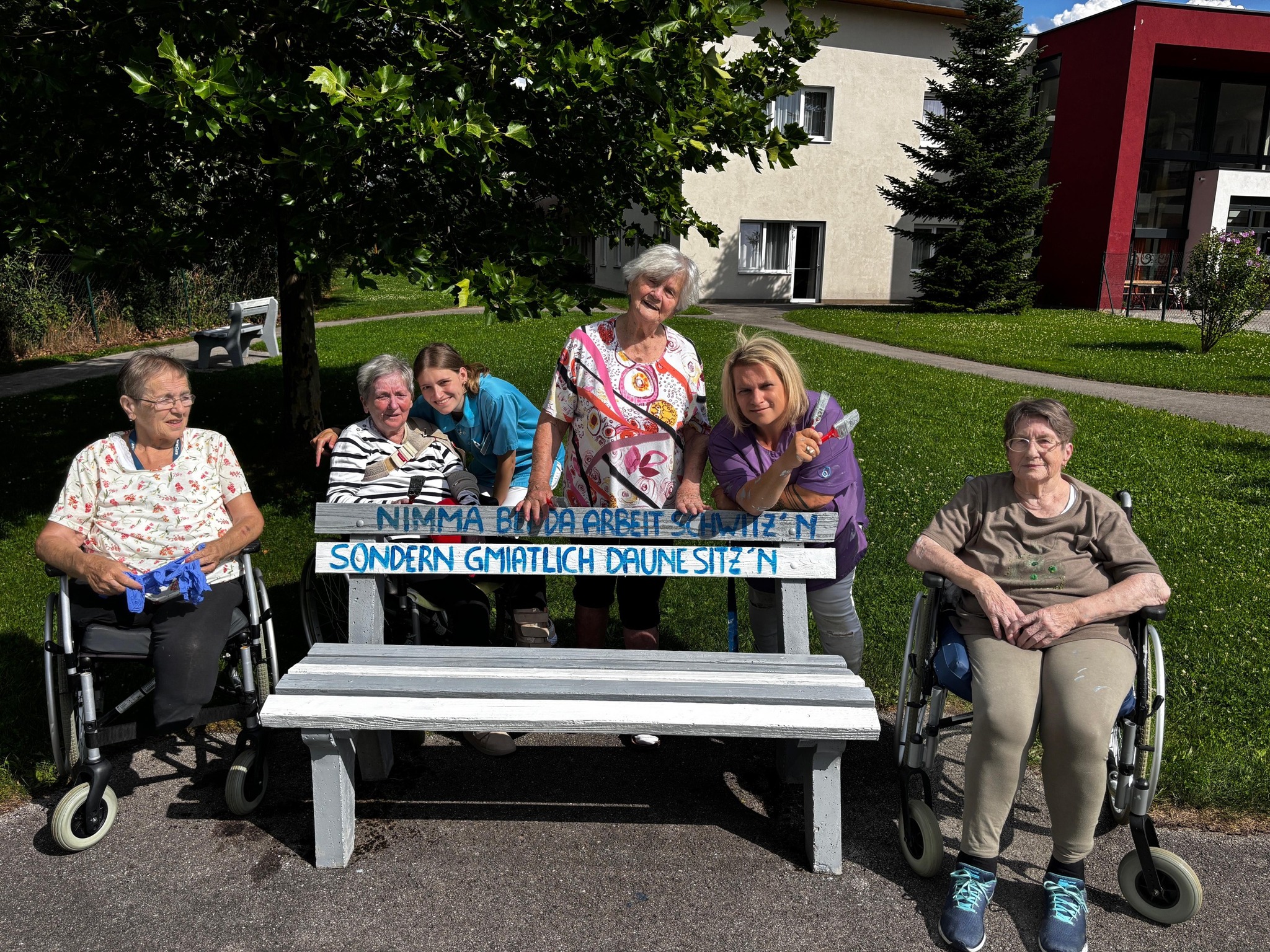 Die Gartenbänke des SeneCura Sozialzentrums Kirchberg am Wechsel erstrahlen in neuem Glanz. Gemeinsam mit der engagierten Seniorenbetreuerin und der tatkräftigen Unterstützung unserer Praktikantin haben die Bewohner:innen mit viel Freude und Kreativität Hand angelegt. Es wurde nicht nur fleißig gestrichen – es entstanden auch liebevolle Sprüche, die zum Verweilen und Innehalten einladen. Das Ergebnis? Bunte Hingucker mit Herz!